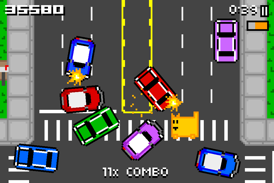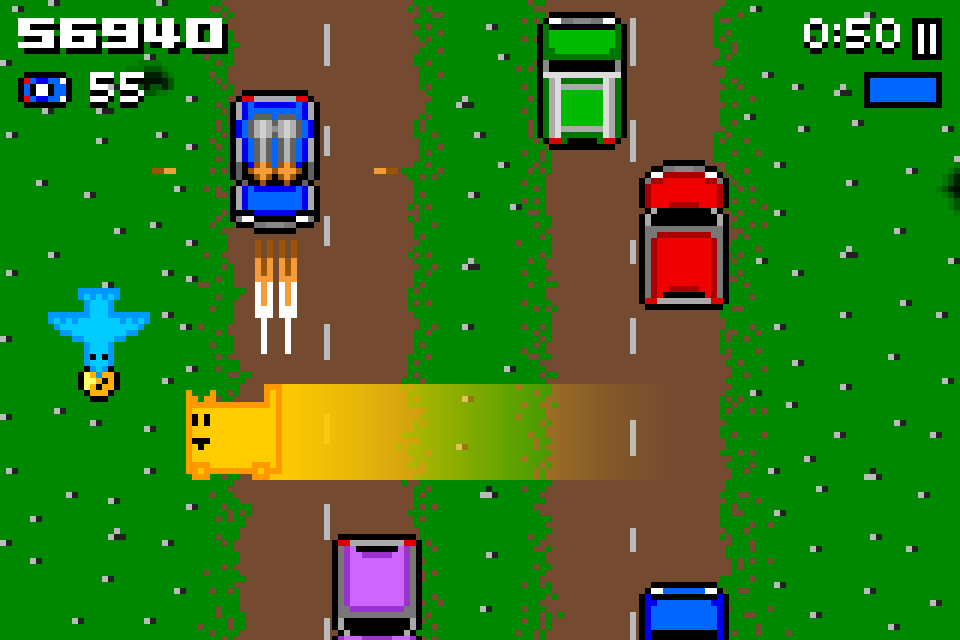 Box Cat is a retro arcade smasher. Crash into cars and create traffic mayhem! Drive Box Cat towards oncoming cars with tilt or touch controls. Progress through Adventure mode to complete achievements, unlock new Cats and discover the world of Box Cat. Battle waves of cars and trucks in the relentless Survival Mode. Enjoy life while smashing through 7 lanes of heavy traffic in Rush Hour mode.